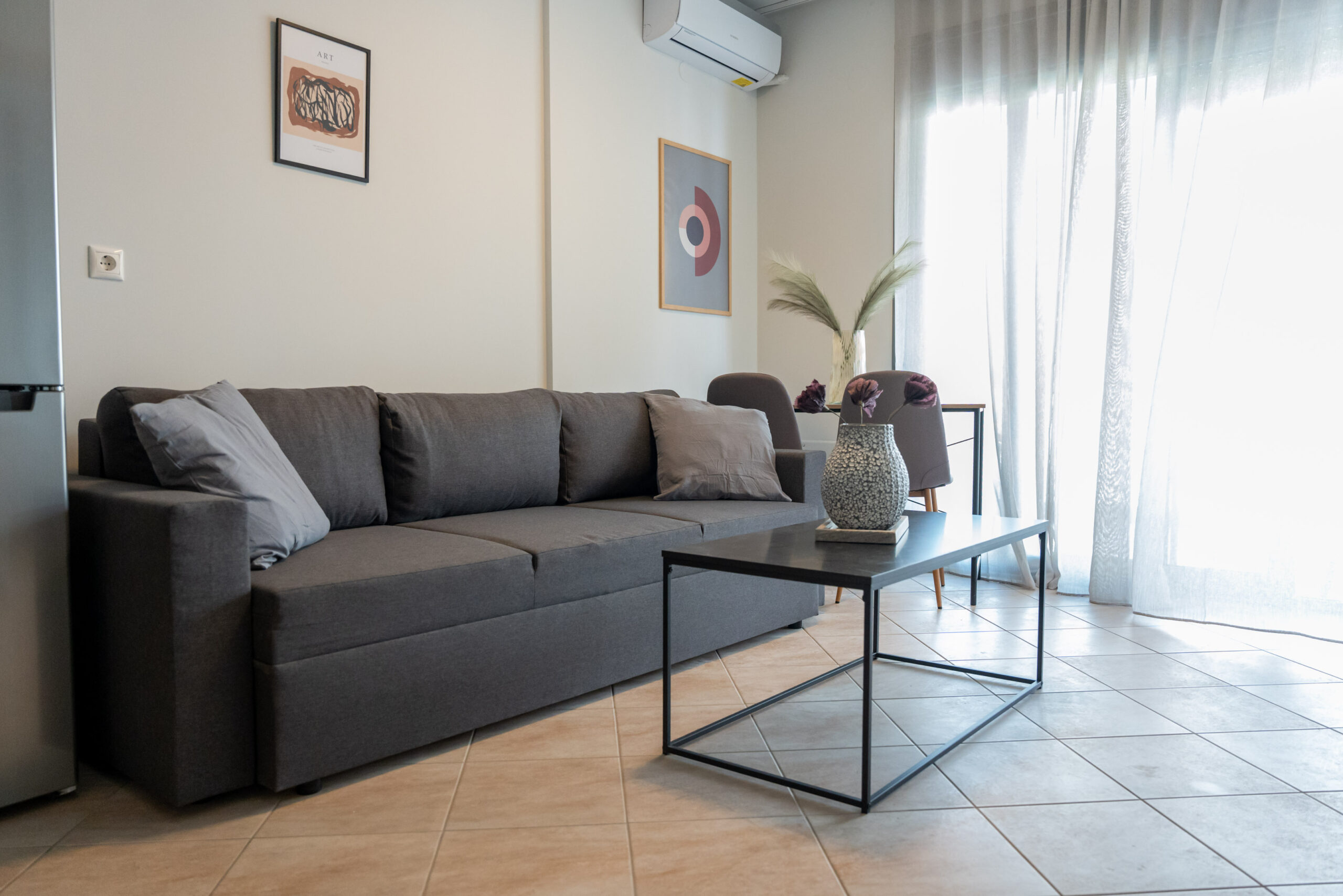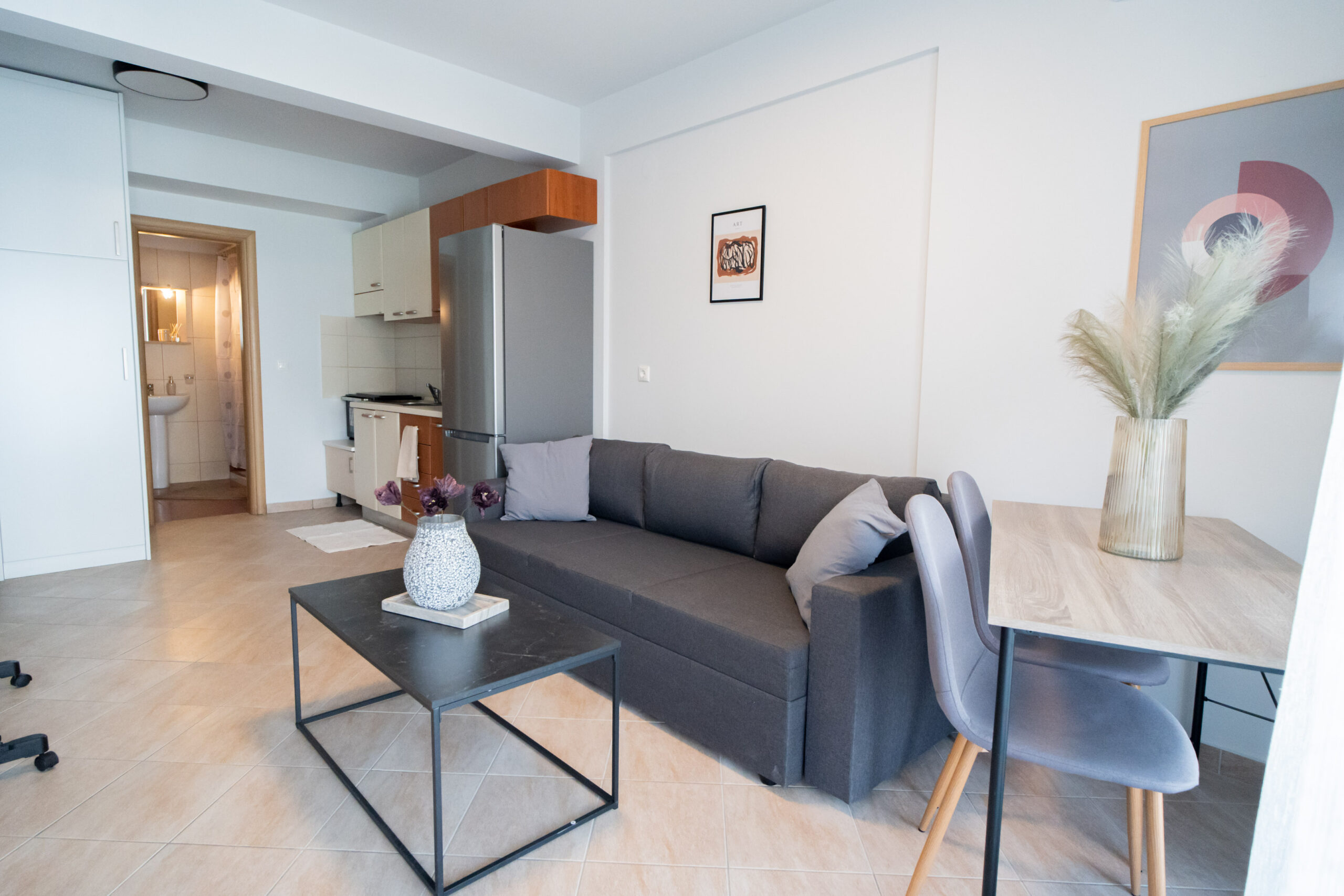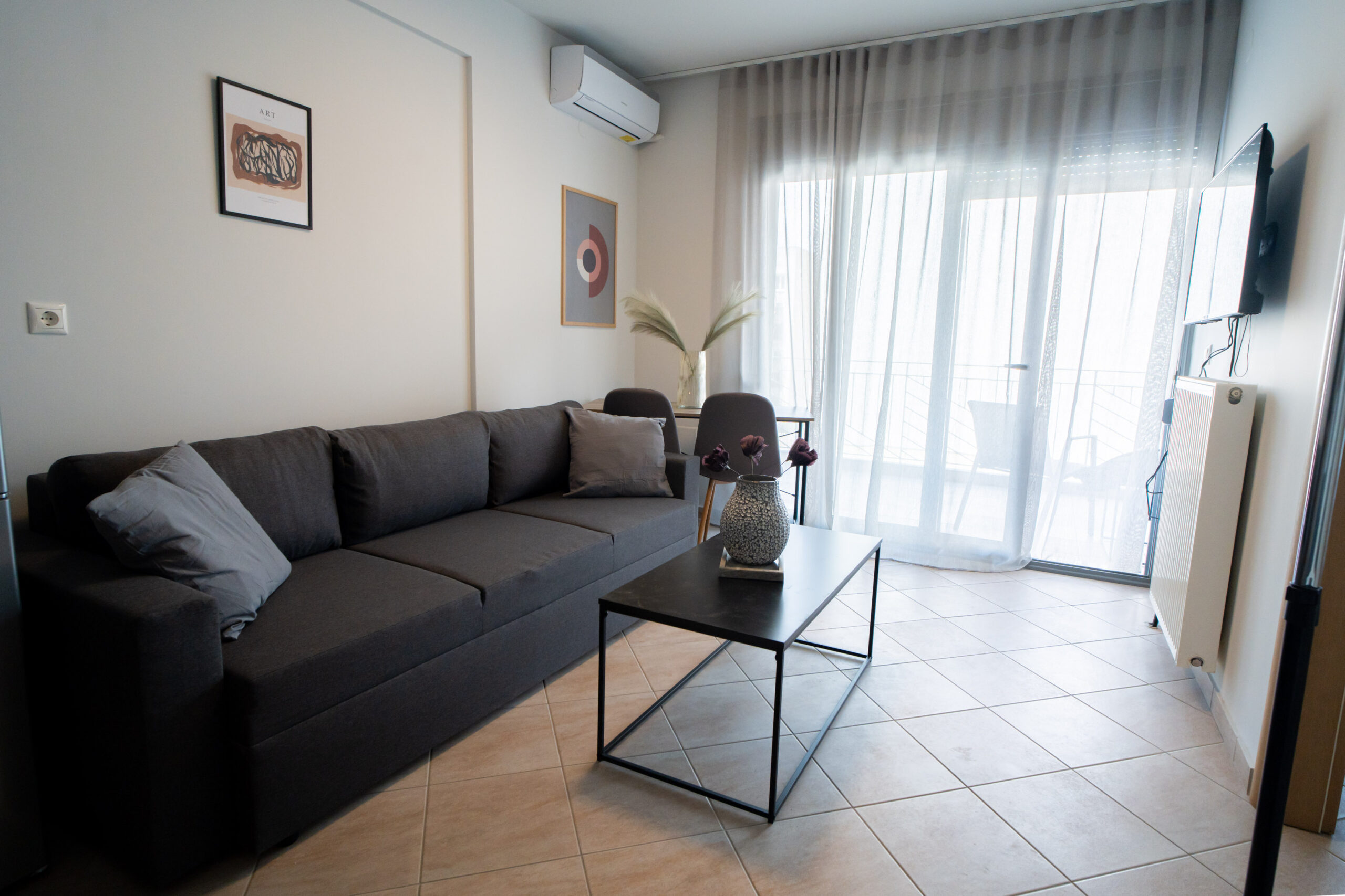 The apartment is just like its title, chic and stylish! It is located at the most central point, right in the heart of the city of Volos. A modern and comfortable apartment of 38 sq.m. fully equipped with all modern comforts. Just 150m. from the central square of Ag. Nikolaou, the streets of the city’s shopping center and all the restaurants and entertainment shops and just 200m. from the sea side of Volos. It is ideal for couples, business guests and leisure.