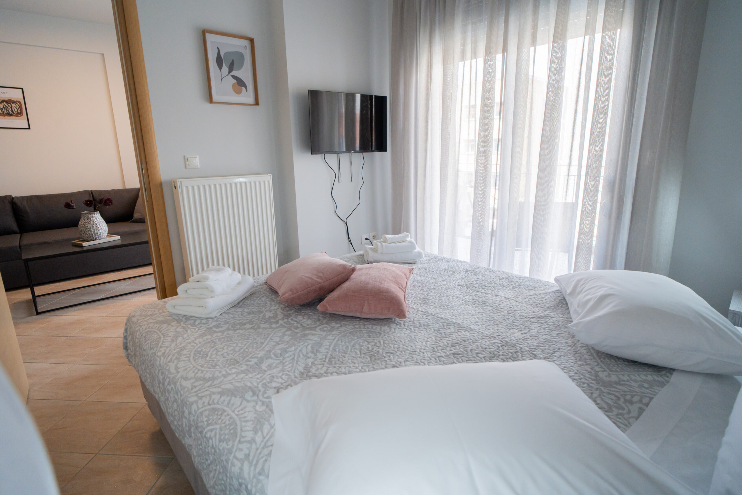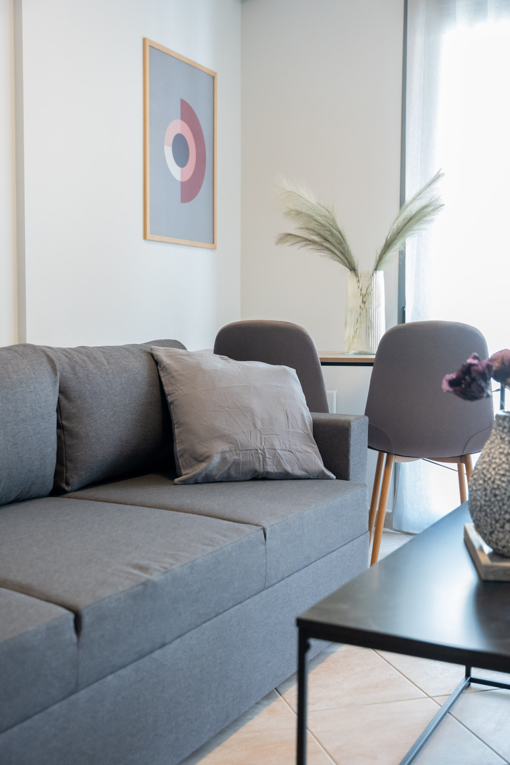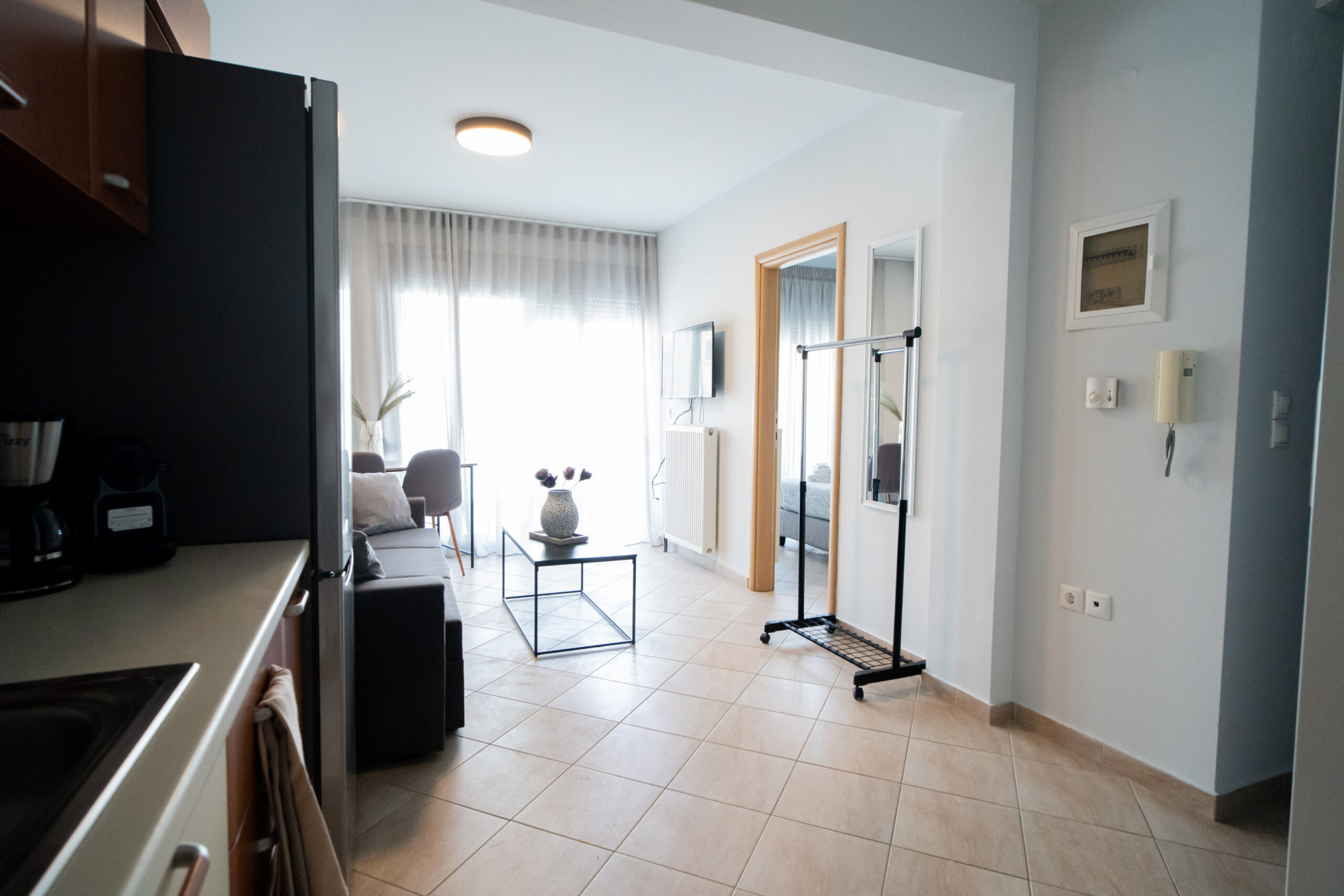 The apartment is just like its title, chic and stylish! It is located at the most central point, right in the heart of the city of Volos. A modern and comfortable apartment of 38 sq.m. fully equipped with all modern comforts. Just 150m. from the central square of Ag. Nikolaou, the streets of the city’s shopping center and all the restaurants and entertainment shops and just 200m. from the sea side of Volos. It is ideal for couples, business guests and leisure.