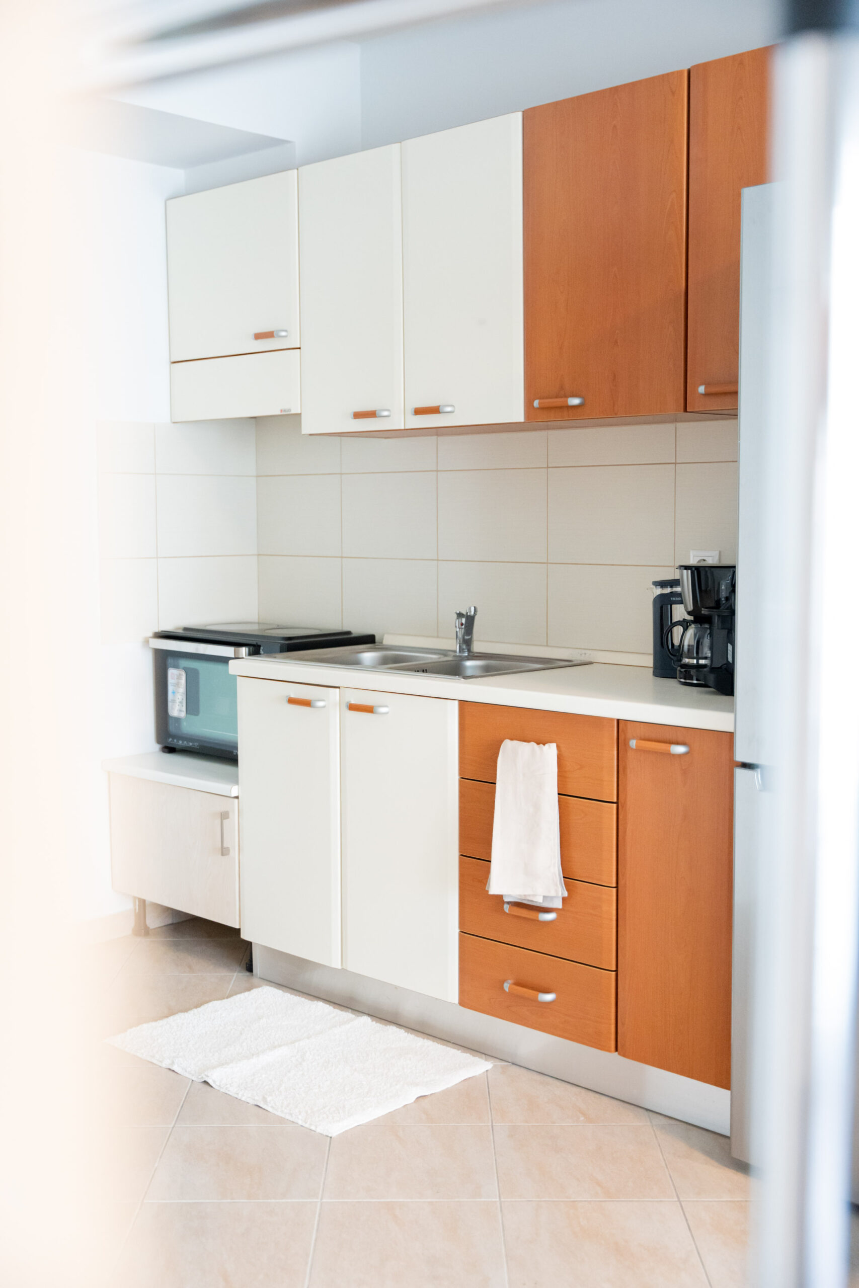 The single main space is contemporary decorated. It includes a table-office for professional use, storage areas, a living room with a comfortable sofa that turns into a double bed, SmartTV and satellite, Wi-Fi. The kitchen is fully equipped with all necessary tableware (such as coffee maker, nespresso machine, kettle, toaster) and cooking utensils, as well as a large fridge, electric oven and ceramic hob.